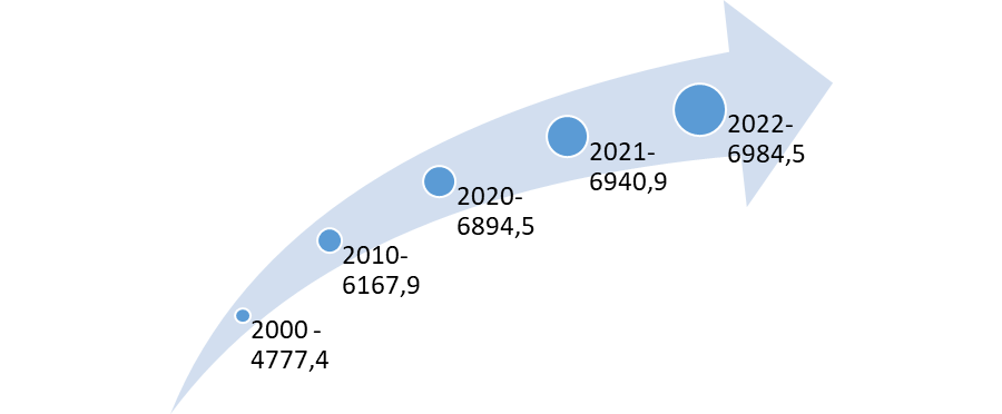Азербайджан, сохраняя стабильные показатели, в 2000 году имел выбросы CO2 менее 2 глобальных гектаров, и к 2022 году эти показатели остались примерно на том же уровне, что свидетельствует о его стремлении к использованию “зеленых” технологий и выполнении международных соглашений.