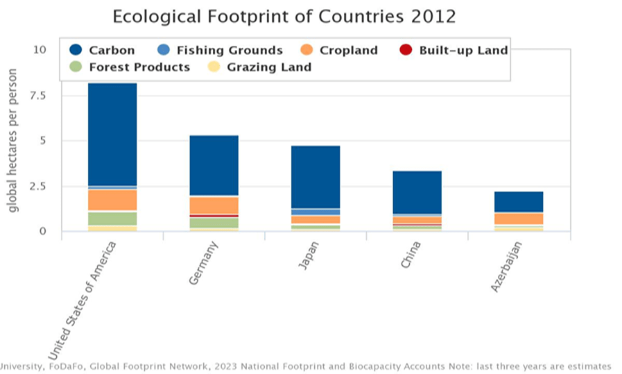 Страны с наибольшим углеродным следом включают Китай, США, страны Евросоюза, Индию и Россию. Экологическая устойчивость возникает, когда население способно поддерживать определенный образ жизни, удовлетворяя требования окружающей среды.